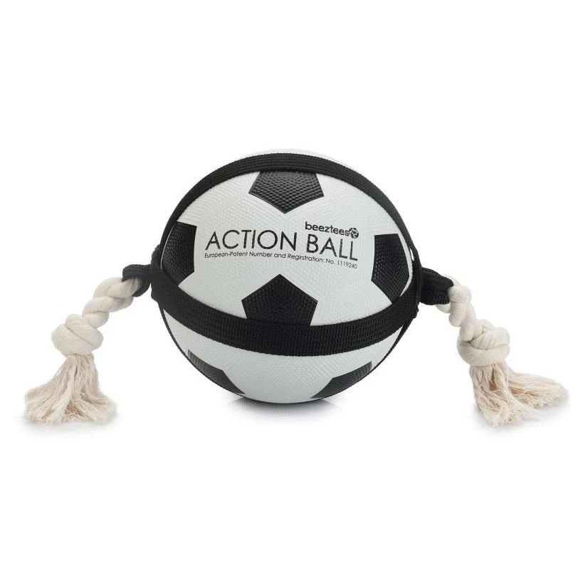Lekker voetballen met jouw hond, dat doe je met de Beeztees Action voetbal. Deze bal is speciaal gemaakt om samen met jouw hond te spelen. De voetbal bevat aan beide kanten flostouw, zodat je hond de bal beter vast kan houden en ook in de lucht kan slingeren. Je kan de voetbal ook gebruiken als trekspeeltje.