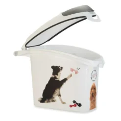 Door de ruime inhoud en het fraaie design is de pot gemakkelijk mee te nemen, op te bergen of leuk om een prominent plekje te geven in de keuken. De vacuüm siliconen sluiting houdt de geur van het eten in de trommel en zorgt ervoor dat het vers blijft. Inclusief bamboe schepje zodat je jouw hond of kat kunt voorzien van de juiste dosering brokjes!