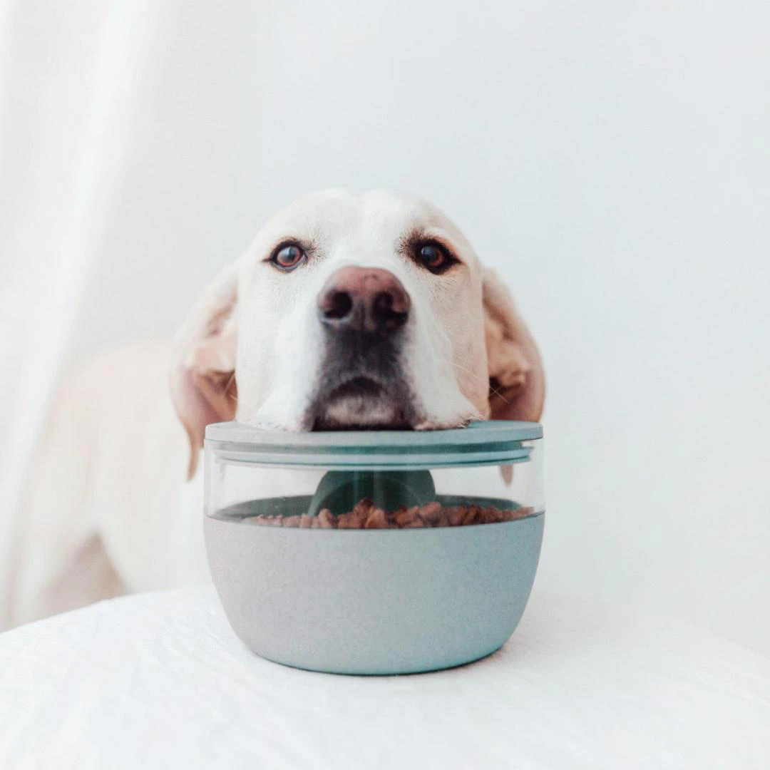 Door de ruime inhoud en het fraaie design is de pot gemakkelijk mee te nemen, op te bergen of leuk om een prominent plekje te geven in de keuken. De vacuüm siliconen sluiting houdt de geur van het eten in de trommel en zorgt ervoor dat het vers blijft. Inclusief bamboe schepje zodat je jouw hond of kat kunt voorzien van de juiste dosering brokjes!