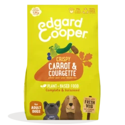 Dit heerlijke, plantaardige recept met wortel en courgette van Edgard & Cooper hondenvoer Adult Plantaardig Wortel geeft je hond alles wat hij of zij nodig heeft. Rijk aan perfect gebalanceerde eiwitten bevat het alle 10 essentiële aminozuren, afkomstig uit aardappelen, rijst en erwtjes. Dit recept is hypoallergeen en zit boordevol verse groenten en een voedzame mix van fruit, kruiden en peulvruchten. Wij koken onze recepten op een lage temperatuur om al het goede en de smaak te bewaren, voor een gelukkige & gezonde hond!