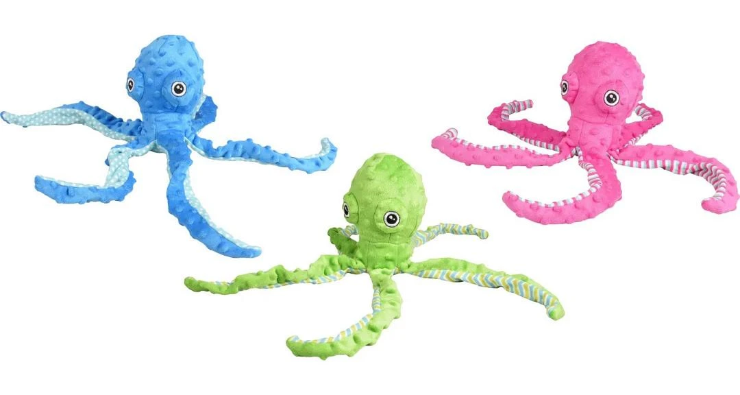De Flamingo Bubbly Octopus is een hondenspeeltje van zacht pluche en heeft een squeaker binnenin, die zeker de interesse van je hond zal opwekken om er mee te gaan spelen.