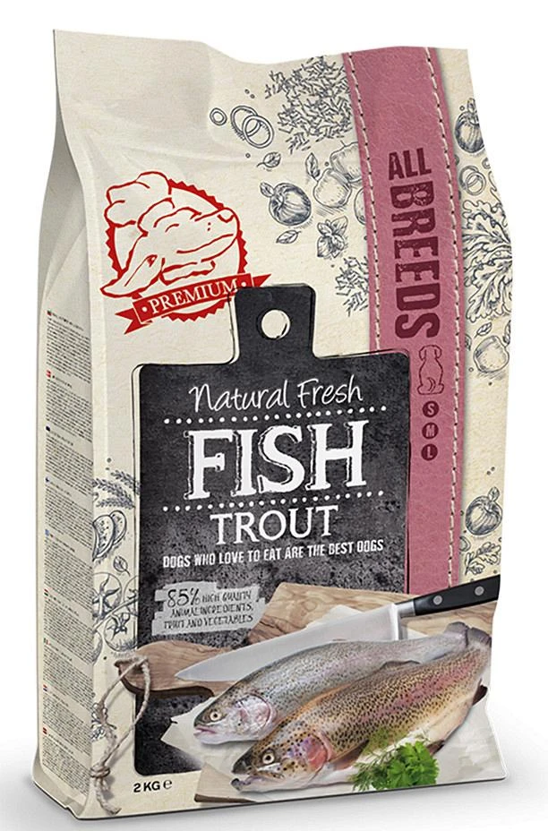 Natural Fresh FISH hondenvoer Adult trout is een premium droogvoer met verse forel, zeer licht verteerbaar, voor volwassen honden van alle rassen.