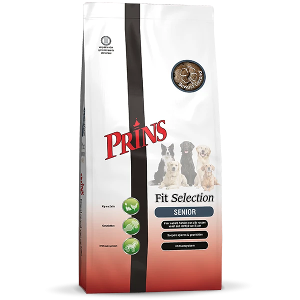 Prins Fit Selection Senior is een krokante voeding voor senior familiehonden van middelgrote en grote rassen vanaf circa 8 jaar.