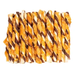De Voskes Rawhide met Kip Twists zijn kauwsnacks voor de hond bestaande uit Thaise buffelhuid omwikkelt met heerlijke gedroogde kipfilet.